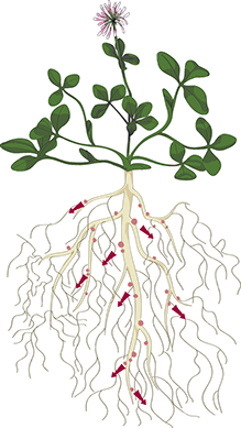 FIXatioN has many benefits, none more impressive than it’s ability to fix nitrogen. Nodules that are on the tap-root interact synergistically with the special rhizobia contained in the seed coating to “fix” nitrogen from the atmosphere.