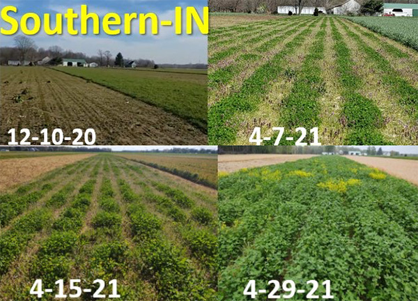 Precision planting was especially important in drought years. The gap row made it so the corn didn’t compete with the cover crop for soil moisture. This allowed the clover to continue to put on biomass without depleting the soil moisture for the cash crop. (Figure 6)